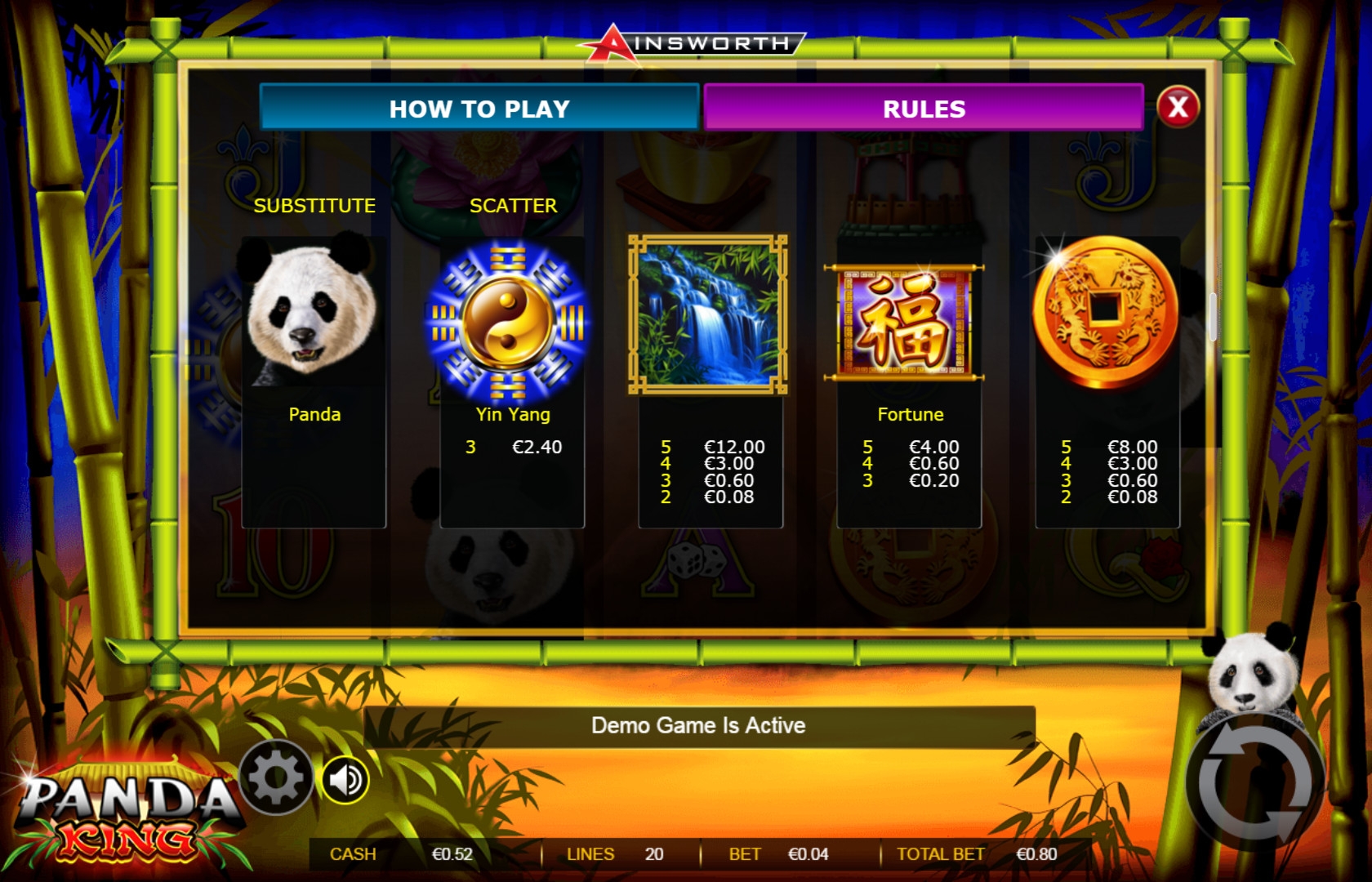 В King Panda отсутствует накопительный джекпот Ainsworth.