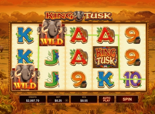 В игровом аппарате King Tusk пять барабанов, двадцать пять постоянно активных линий и пятнадцать иконок на экране.