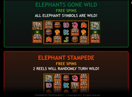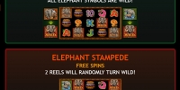 - Elephant Stampede – В каждом спине два барабана целиком заняты символами Wild.