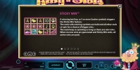 - Scatter также не приносит выигрышей, но запускает фри-спины. Так как три и более скаттеров начинают Sticky Win, на экране может быть одновременно до пятнадцати таких символов. Минимальное количество бесплатных вращений, которые может получить игрок, равно десяти (за пять скаттеров), а максимальное – тридцати (за девять – пятнадцать скаттеров).