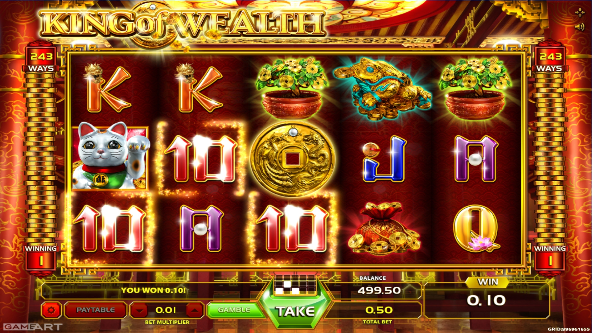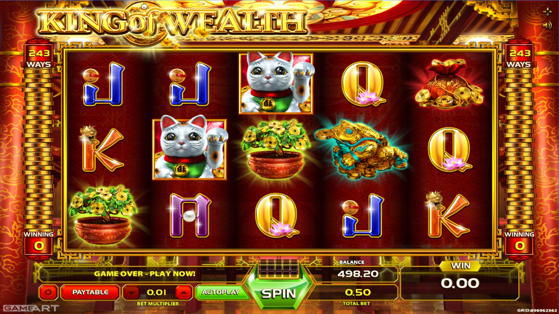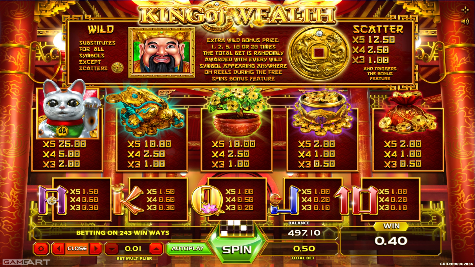 В King of Wealth не производится розыгрыш накопительных джекпотов GameArt.