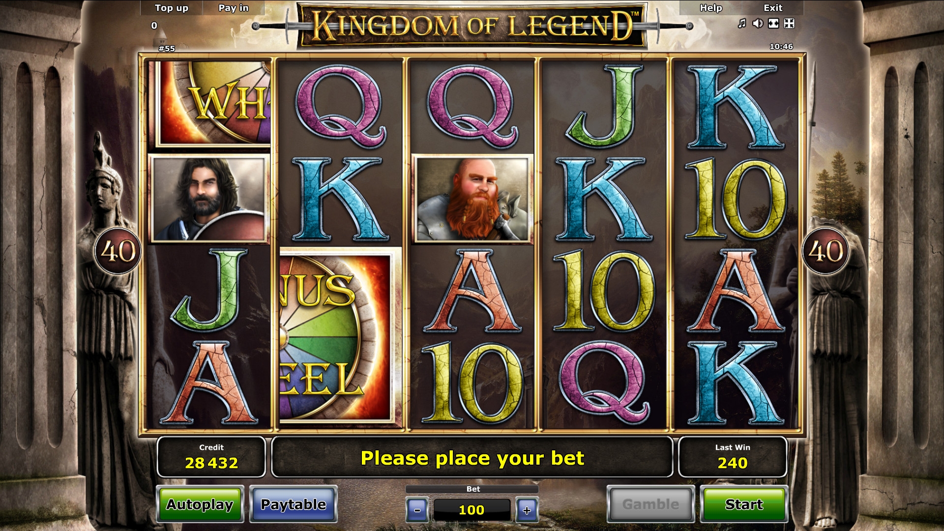 Автомат «Легендарное королевство» доступен на разных языках, включая русский. Панель управления стандартная для всех последних игр Novomatic. Она интуитивно понятная и удобная.