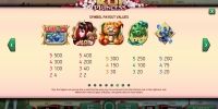 Помимо главной героини, которой является очаровательная девушка, на экране появляются картинки с изображением разноцветных масок, китайских монет и номиналов карт от десятки до туза. Принцесса идет на барабанах полосами и может занимать всю колонку.