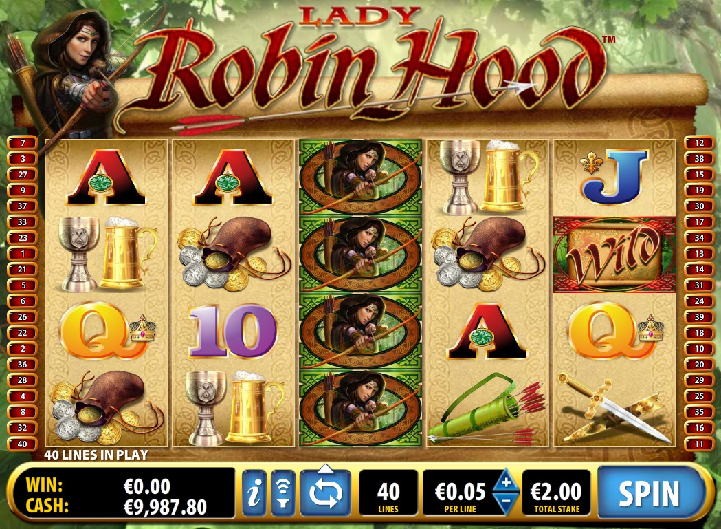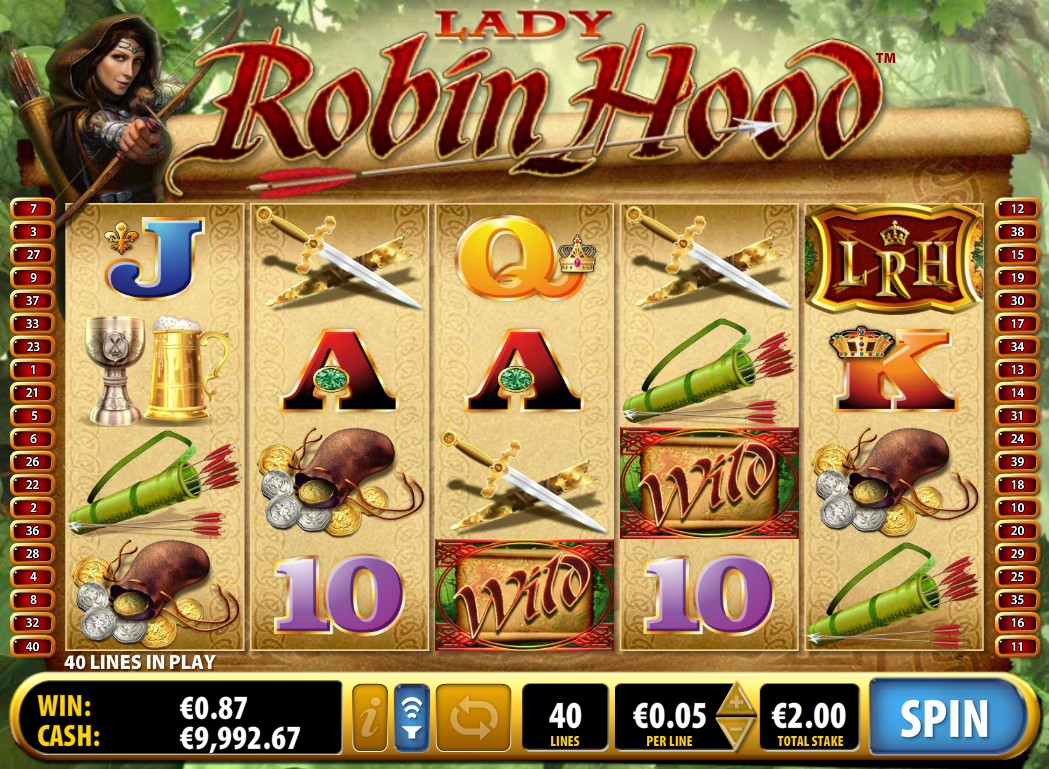 Это пятибарабанная модель с тремя рядами символов на экране. Играть на игровом автомате «Леди Робин Гуд» разрешается исключительно по сорока линиям. Ставка на каждую из них может варьироваться по желанию пользователя в диапазоне от одного цента до десяти евро, а на спин принимается не более четырехсот евро.
