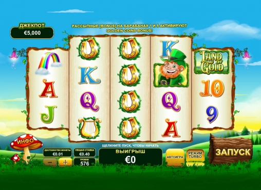 Land of Gold-новый и очень интересный игровой автомат!Яркая,красочная графика!Удобный и интересный интерфейс!Существует хорошая бонусная игра!Также не плохой джек пот!Я играла,мне очень понравилось!