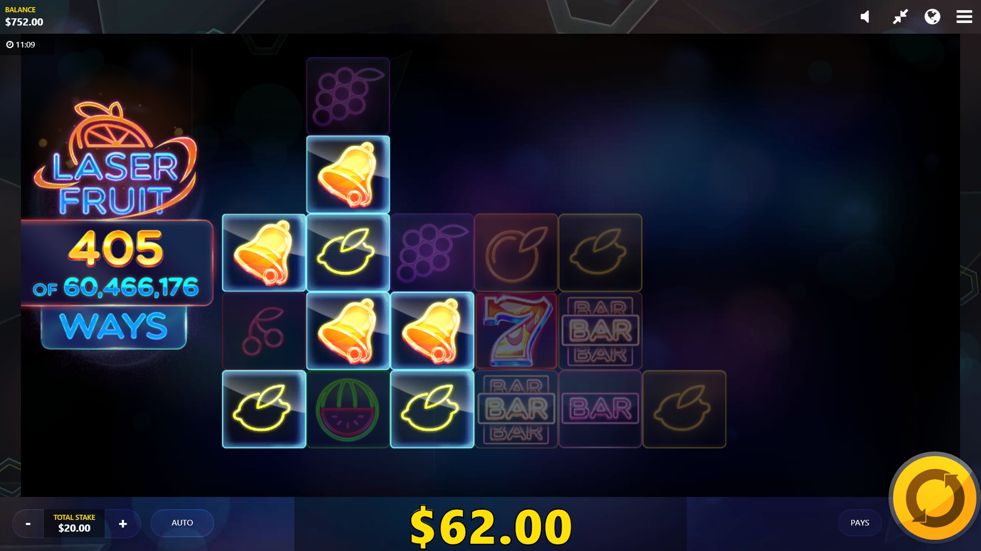 Выигрыши рассчитываются по текущей ставке и коэффициентам, выделенным для всех комбинаций, которые могут сложиться в Laser Fruit. Зачастую в одном спине сразу несколько выплат.