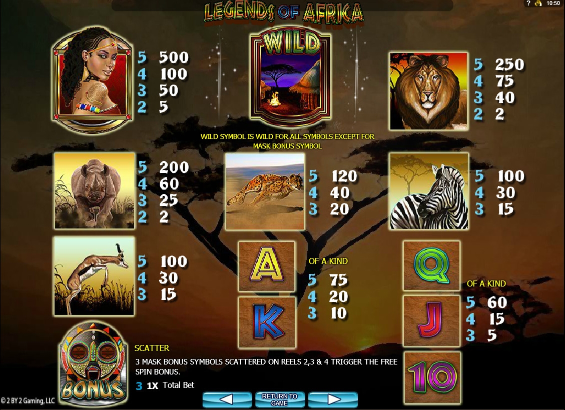 Прогрессивный джекпот в Legends of Africa не разыгрывается.