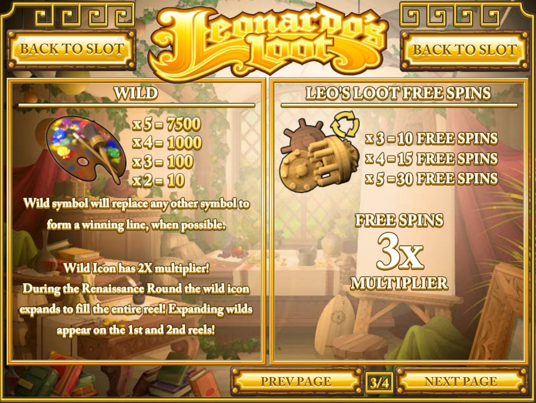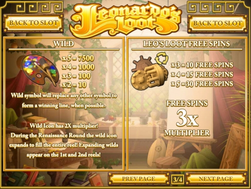 Великий Леонардо да Винчи прожил без малого семьдесят лет, что было немало для его современников. За годы активной творческой и научной деятельности он нарисовал множество прекрасных полотен, написал несколько книг, сделал немало великих научных открытий в разных сферах и вообще создал кучу разного «добра». Его бесценным творениям разработчики из Rival посвятили игровой автомат Leonardo’s Loot, о котором мы хотим рассказать читателям энциклопедии азарта Casinoz.