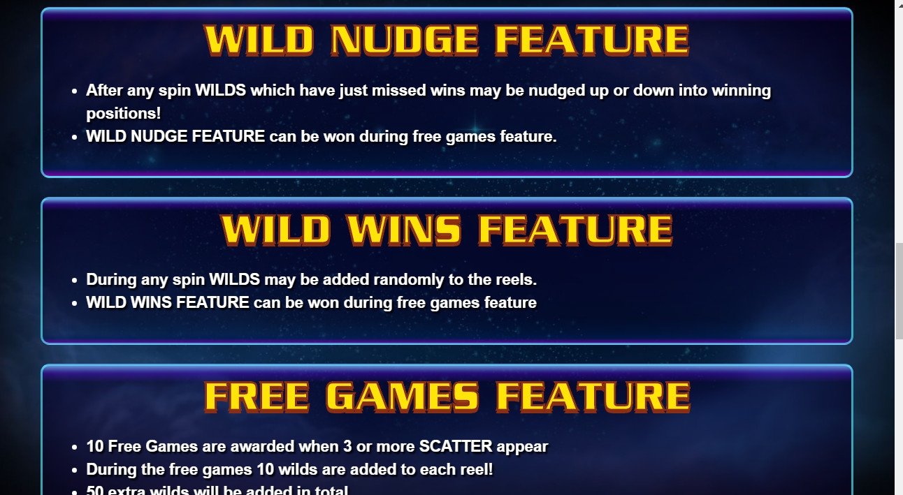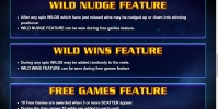 - Wild Nudge – Если для образования выигрышной цепочки недостает картинок, находящиеся рядом джокеры могут сдвинуться на одну ячейку вверх или вниз. Этим они помогут составить последовательность.