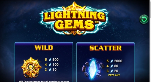 Игровой автомат Lightning Gems – это модель с пятью барабанами, десятью постоянно активными линиями и пятнадцатью картинками на экране.