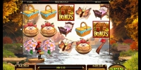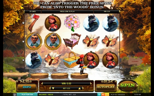 Естественно, в видео-слоте вас ждет встреча с главными героями сказки. Красная Шапочка, Серый Волк и Бабушка красочно изображены на барабанах. На экране также появляются предметы, имеющие отношение к сюжету: корзинка, кровать, топор, пироги и даже вставная челюсть.