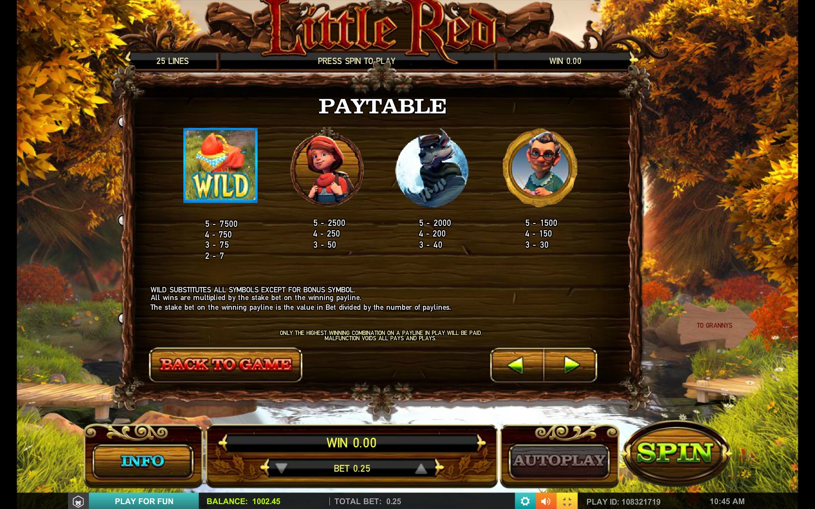 Когда Красная Шапочка окажется на другом берегу, начнется основной этап бонусной игры To Granny’s. Девочка будет оказываться на распутье. Вам нужно будет выбирать, по какой тропинке она должна пойти. Если выбор будет удачным, она продолжит путь, а вам будет начислена выплата. Но при неудачном исходе она наткнется на волка. В таком случае игра завершается с сохранением всех достижений.