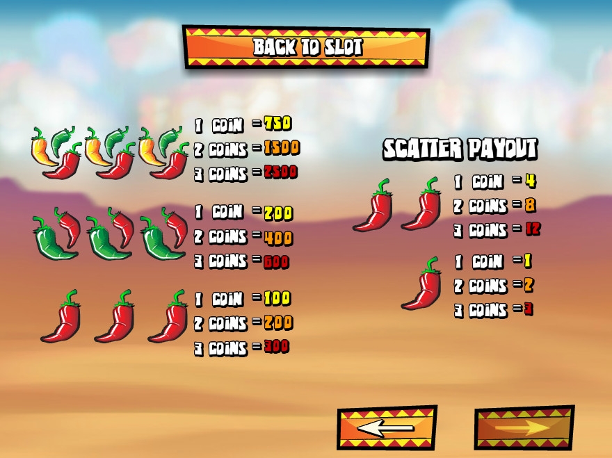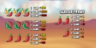 Набор картинок, изображенных на барабанах игры, небогат. Здесь представлены лишь одна, две и три полоски BAR цветов мексиканского флага (зеленого, белого и красного), одна, две и три желто-красные семерки, а также красный, зеленый и желтый перцы чили, тоже нарисованные по одному, два или три.