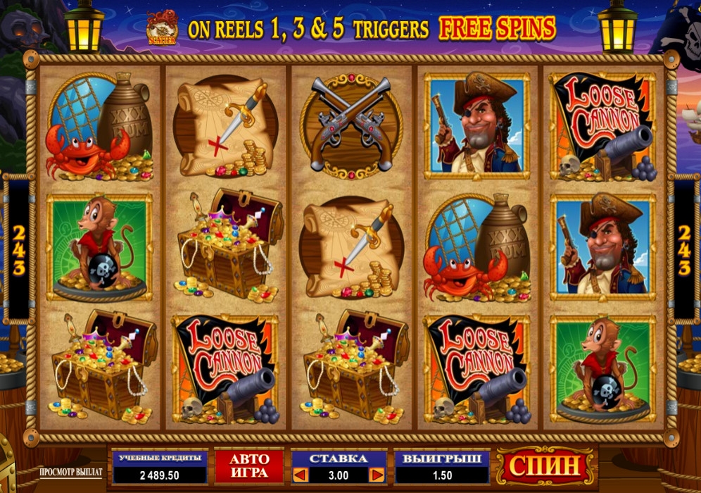 Предлагаем читателям Casinoz обзор ранее анонсированной новинки от компании Microgaming. Это бесплатный игровой автомат Loose Cannon, посвященный очень популярной в интернет-казино пиратской тематике. Вы окажетесь в компании обаятельных и ни капельки не страшных джентльменов удачи, с которыми вам предстоит брать на абордаж судно капризной Госпожи Фортуны.