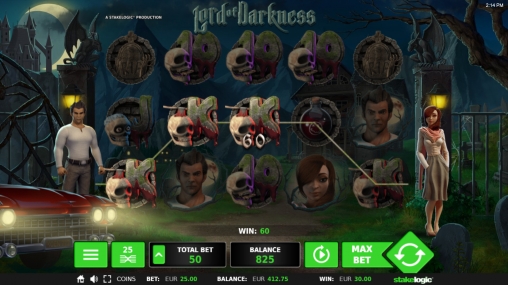 Видео-слот «Повелитель тьмы» является 5-барабанным аппаратом с двадцатью пятью фиксированными линиями. На каждую полосу разрешается ставить до четырех монет достоинством 0.01 – 0.50 евро (0.25 – 50 евро на спин).