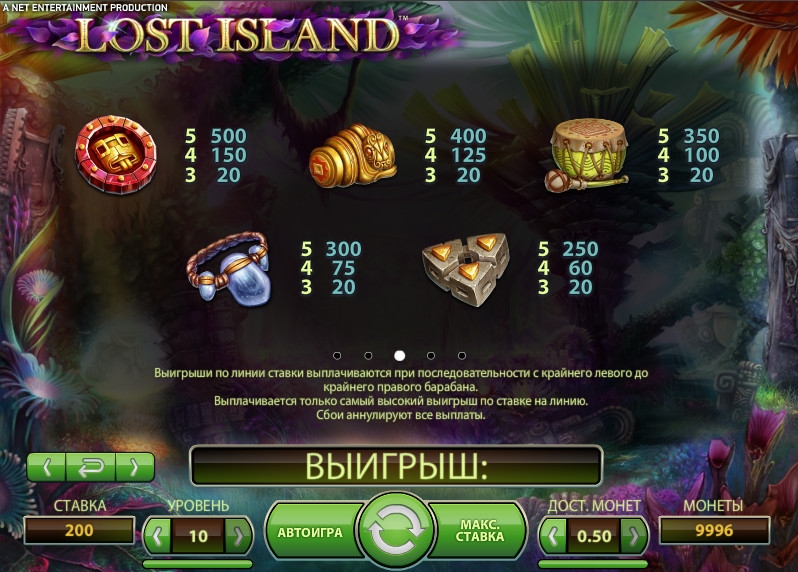 Компания Net Entertainment предлагает вам отправиться на поиски сокровищ древних племен, спрятанных на теперь уже необитаемом острове, находящемся где-то на бескрайних просторах океана. Для этого вам нужно запустить бесплатный игровой автомат Lost Island, который стал очередной классной новинкой в ассортименте моделей популярного производителя софта для интернет-казино.