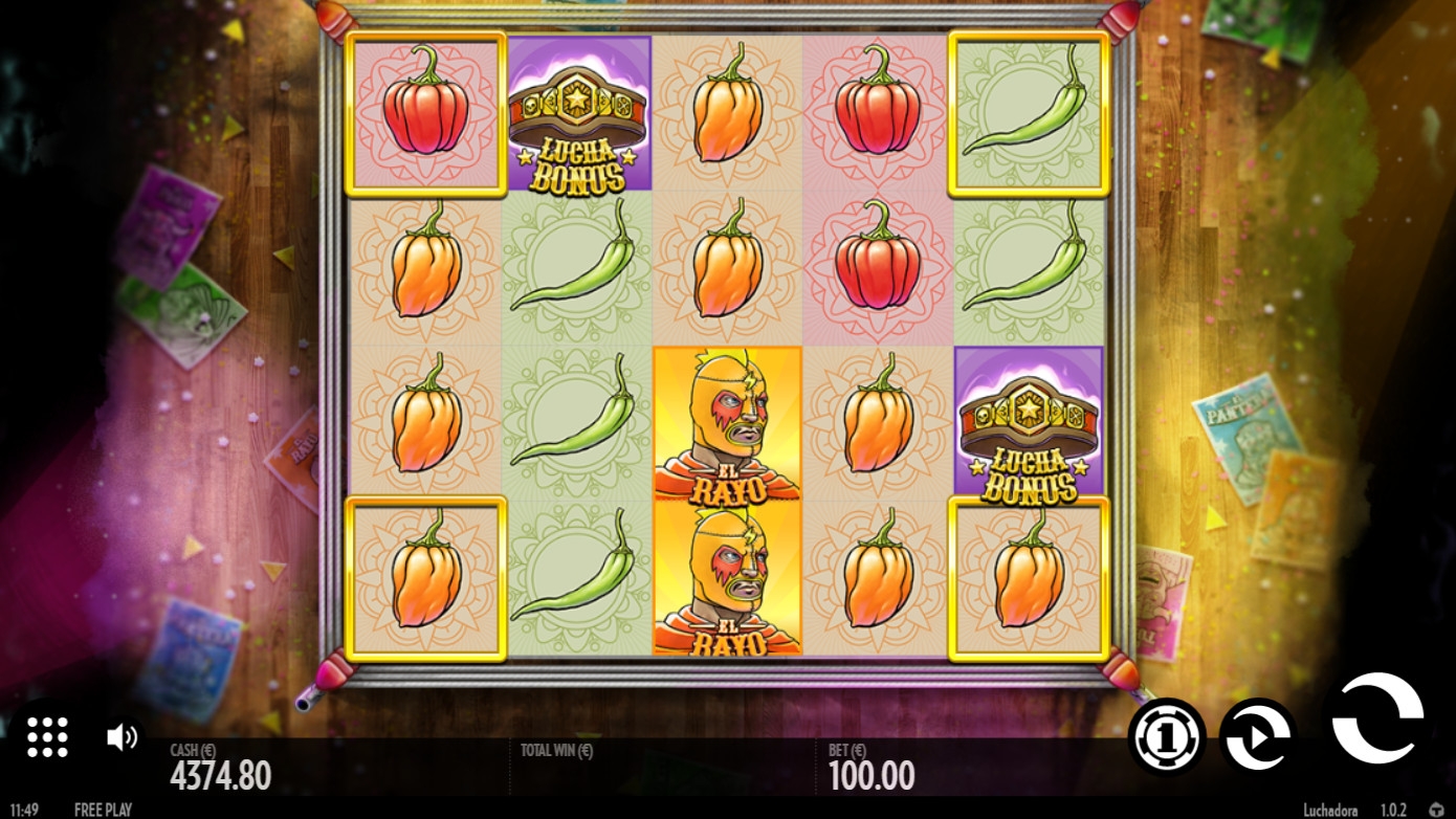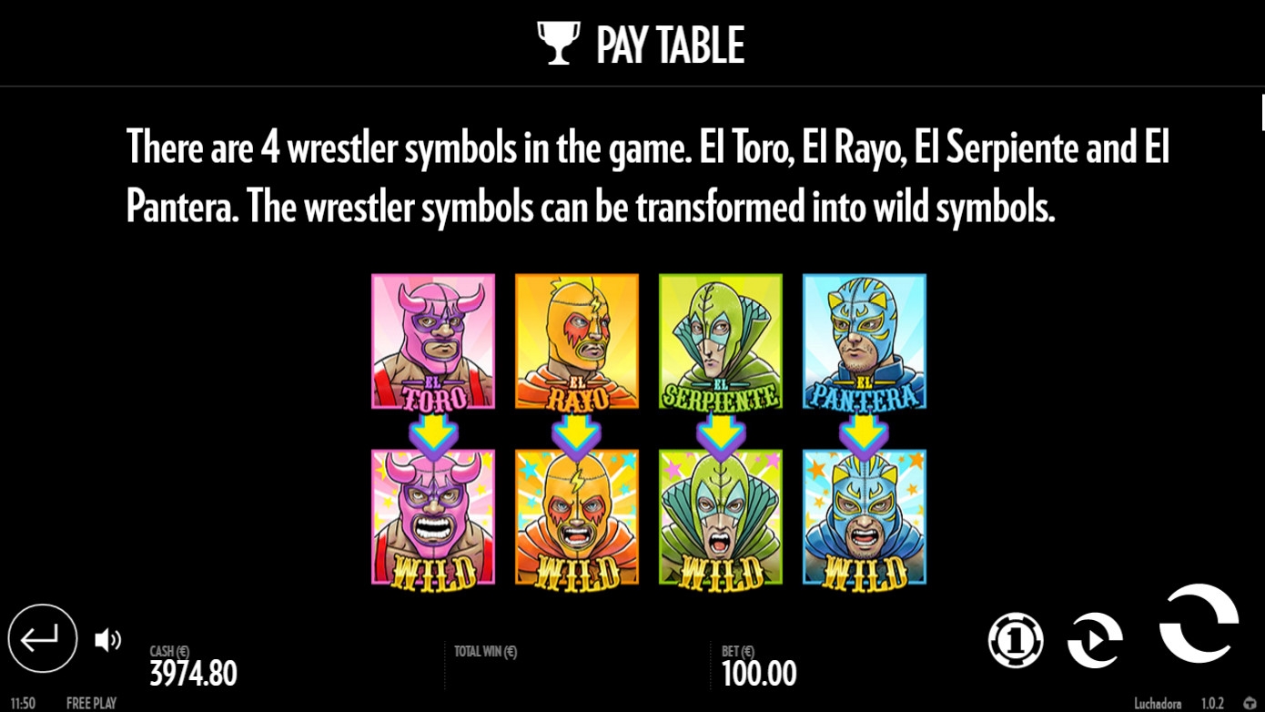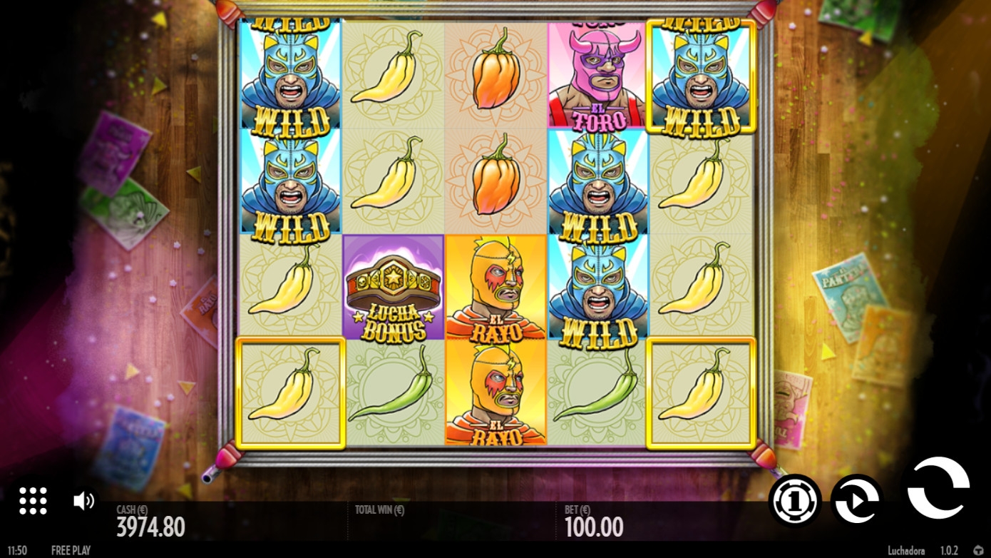 - Lucha Bonus (пояс чемпиона) начинает бонусный раунд, когда от трех таких символов оказываются на барабанах.