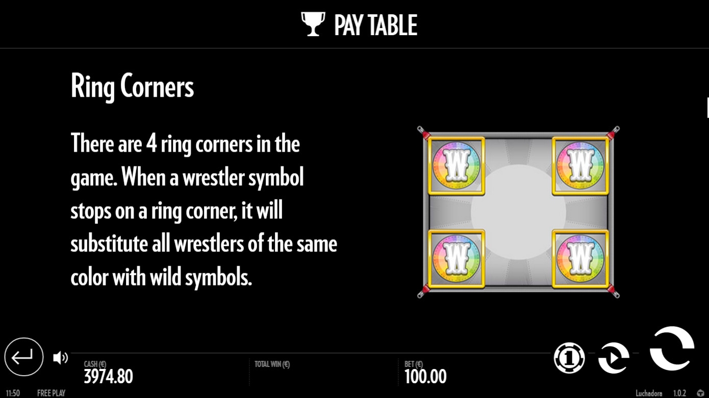 - Ring Corners – Четыре угловых ячейке на экране выделены рамкой. Когда реслер оказывается в одном из них, все такие же борцы в колонках превращаются в джокеры.