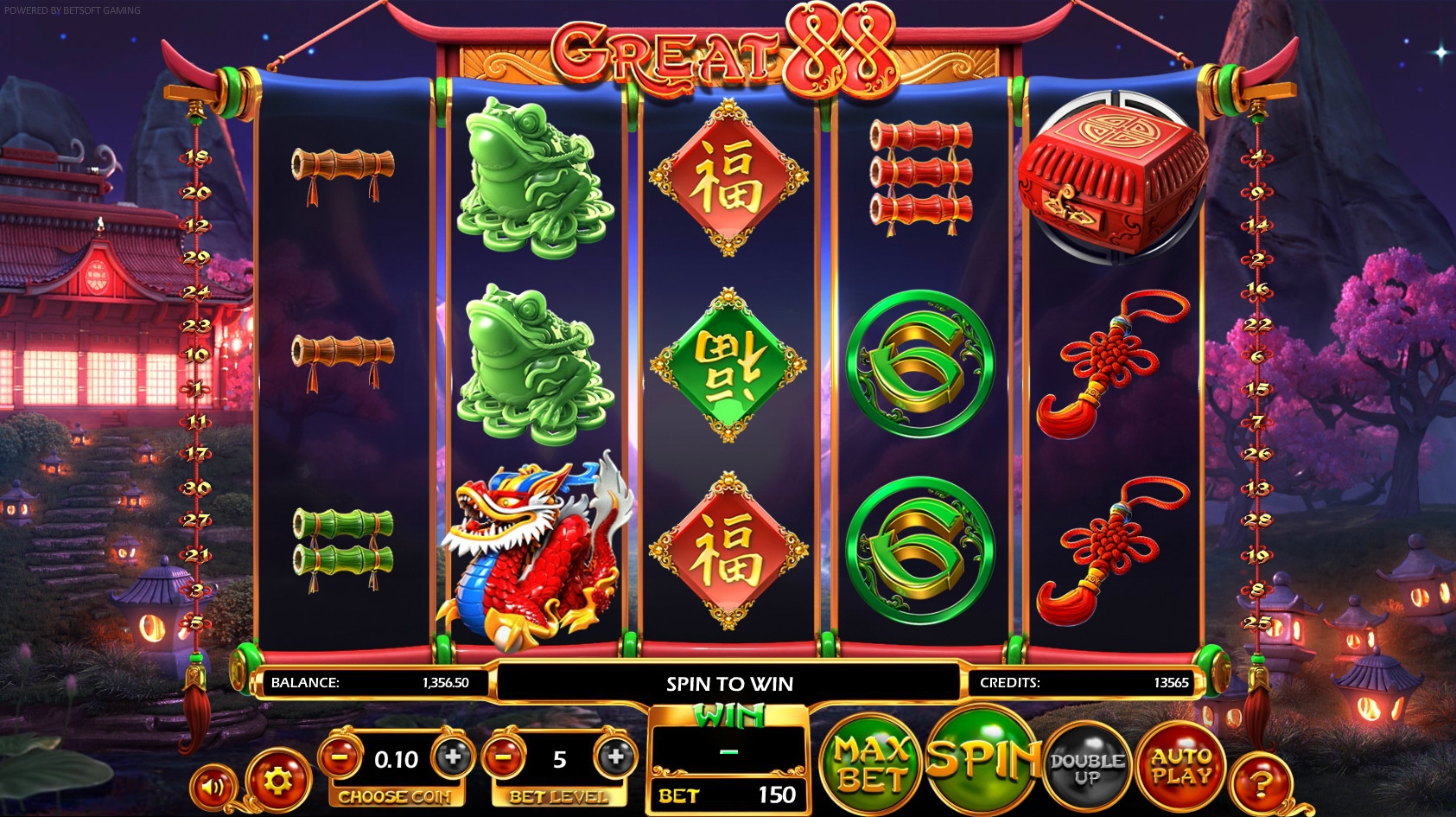 Мы понимаем, что некоторым читателям Casinoz такие аппараты изрядно надоели, ведь их стало очень уж много. Но даже если вы смертельно устали от моделей с иероглифами и драконами на барабанах, настоятельно советуем вам ни в коем случае не оставлять без внимания 3D-автомат Great 88, который предлагает компания Betsoft. Это потрясающая игра с великолепной графикой, яркими анимационными эффектами и несколькими замечательными бонусами. Читайте далее обо всех ее возможностях и особенностях.