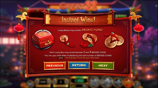 - Instant Wins – В каждой из шкатулок будет от одной до трех монет. Чем больше их окажется в сумме, тем крупнее выплата вам достанется. Она бывает от трех до пятнадцати общих ставок.