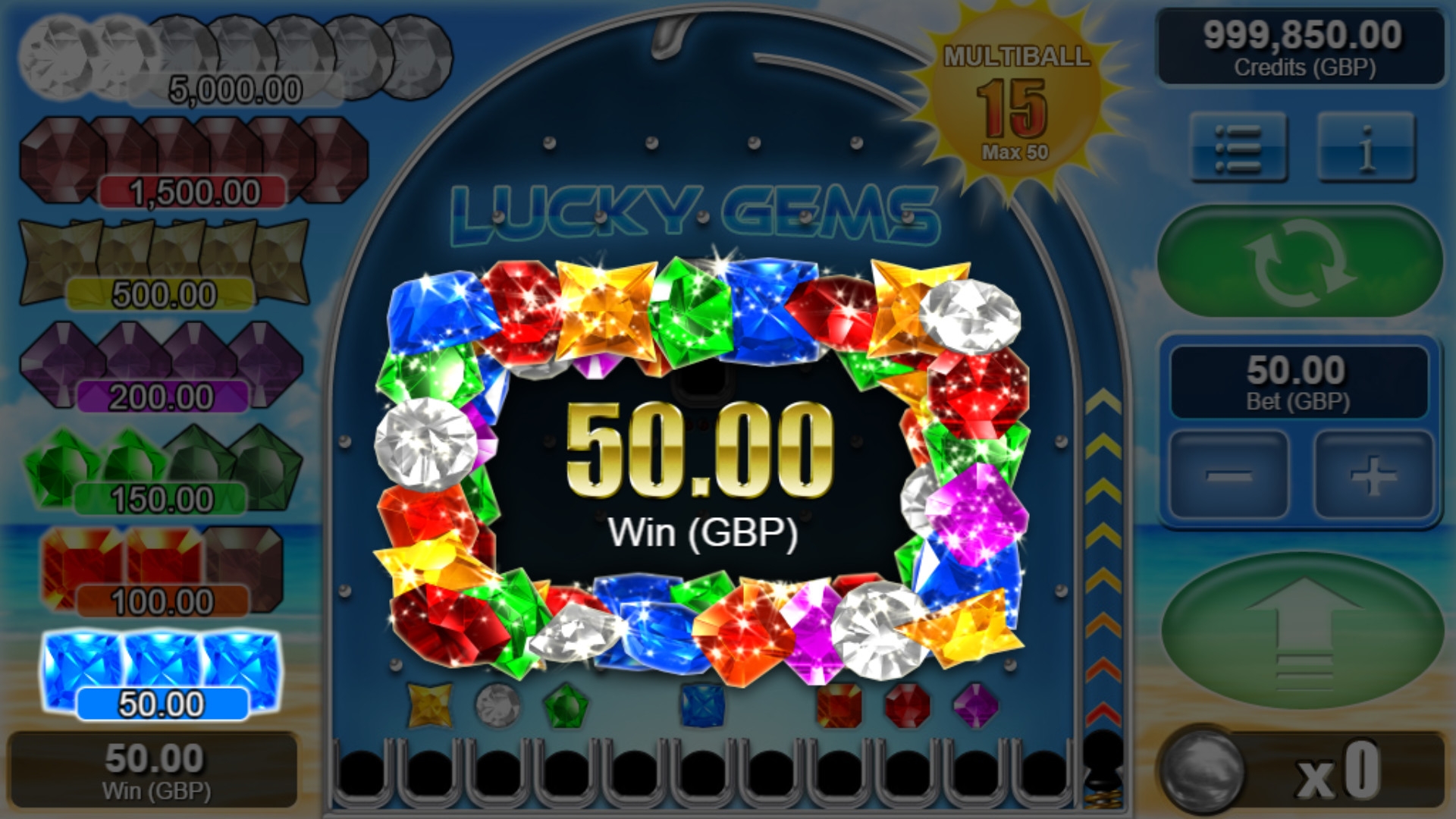 - Multiball – Эта опция означает, что в процессе игры увеличивается количество шаров, участвующих в каждом следующем розыгрыше. Изначально их двенадцать. Но на экране есть две ячейки с изображением солнца. Если шарик останавливается в одной из них, общее количество шаров возрастает на единицу. Всего их может быть до пятидесяти. Когда их будет пятьдесят, игроку полагается бонус.