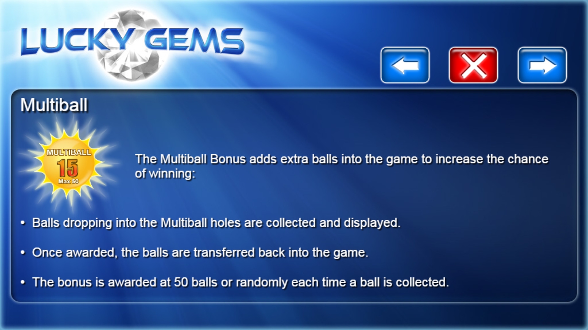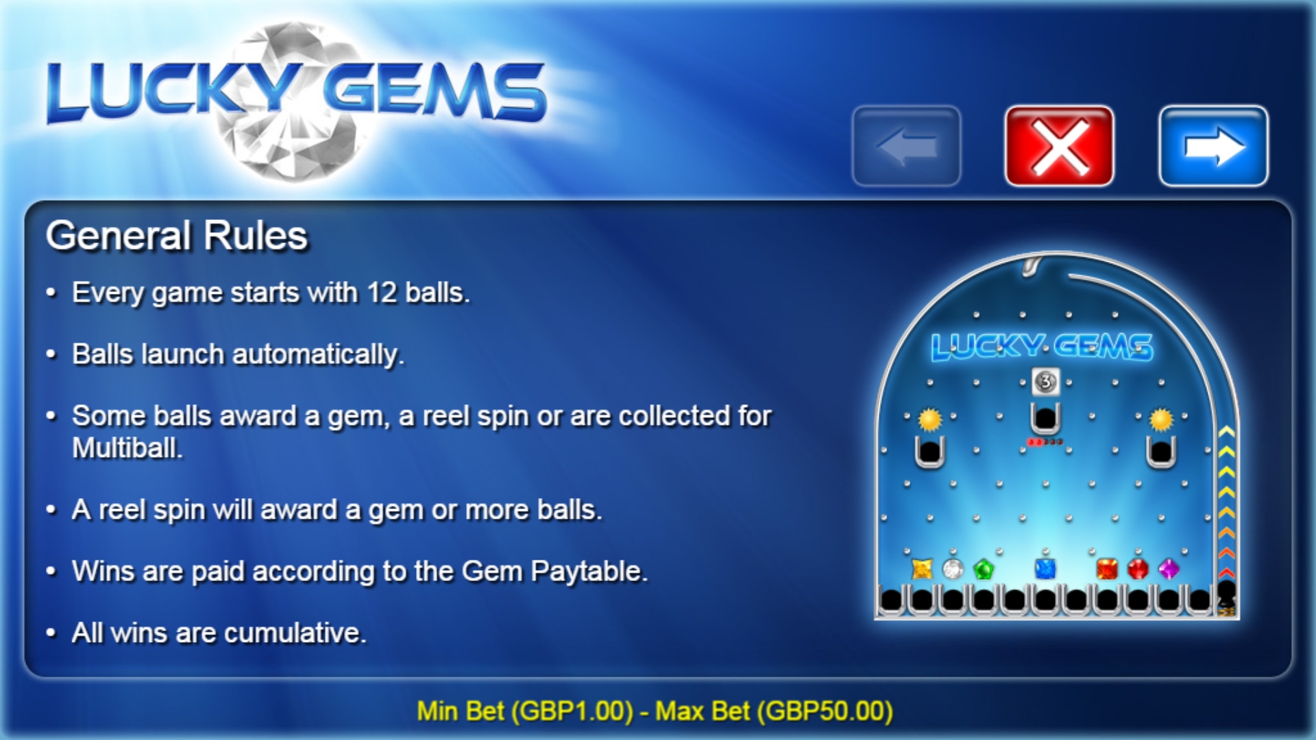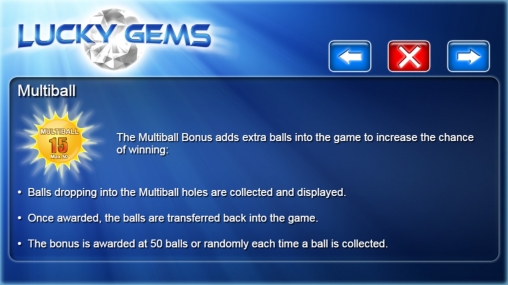 Lucky Gems представляет собой развлекательную азартную игру, в которой из тоннеля вылетают двенадцать шаров (в процессе их количество увеличивается).