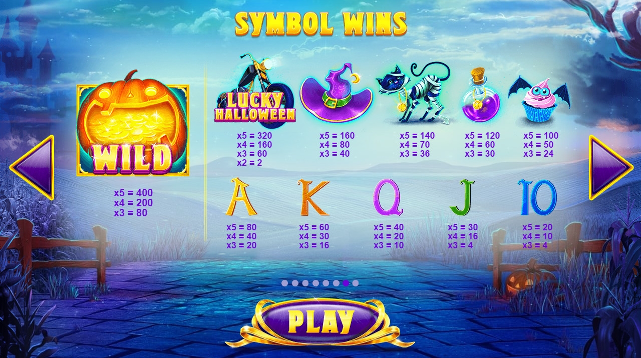 «Счастливый Хэллоуин» - онлайновый игровой автомат с пятью барабанами и двадцатью активными полосами, задействованными по умолчанию. На экране можно увидеть пятнадцать картинок.
