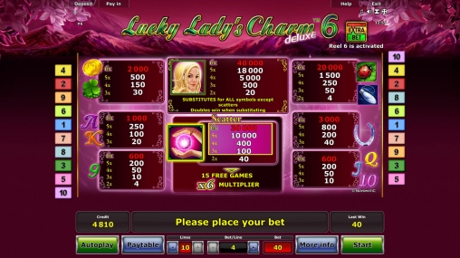 Точные лимиты выясняйте в онлайн-казино, где вы собираетесь играть на автомате Lucky Lady’s Charm 6 Deluxe на деньги.