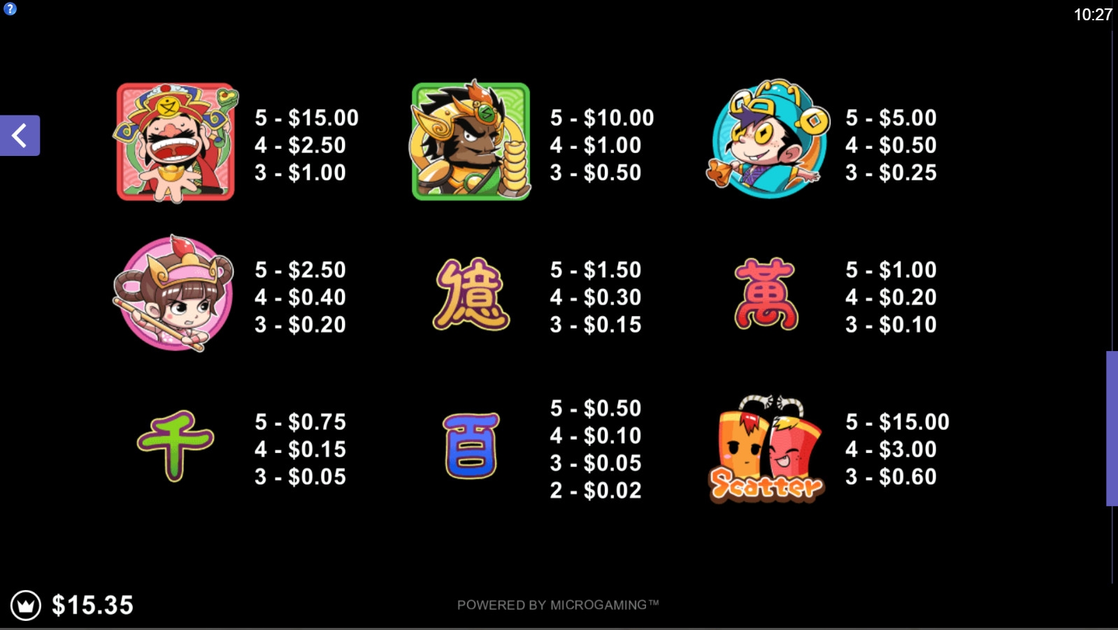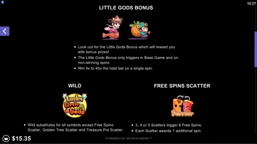 В Lucky Little Gods отсутствует прогрессивный джекпот Microgaming.