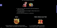- Wild (логотип Lucky Little Gods) представлен на двух крайних барабанах. Он не оплачивается, но заменяет в цепочках стандартные иконки.