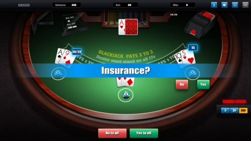 - При тузе у дилера и блэкджеке у игрока пользователь может взять равные деньги.