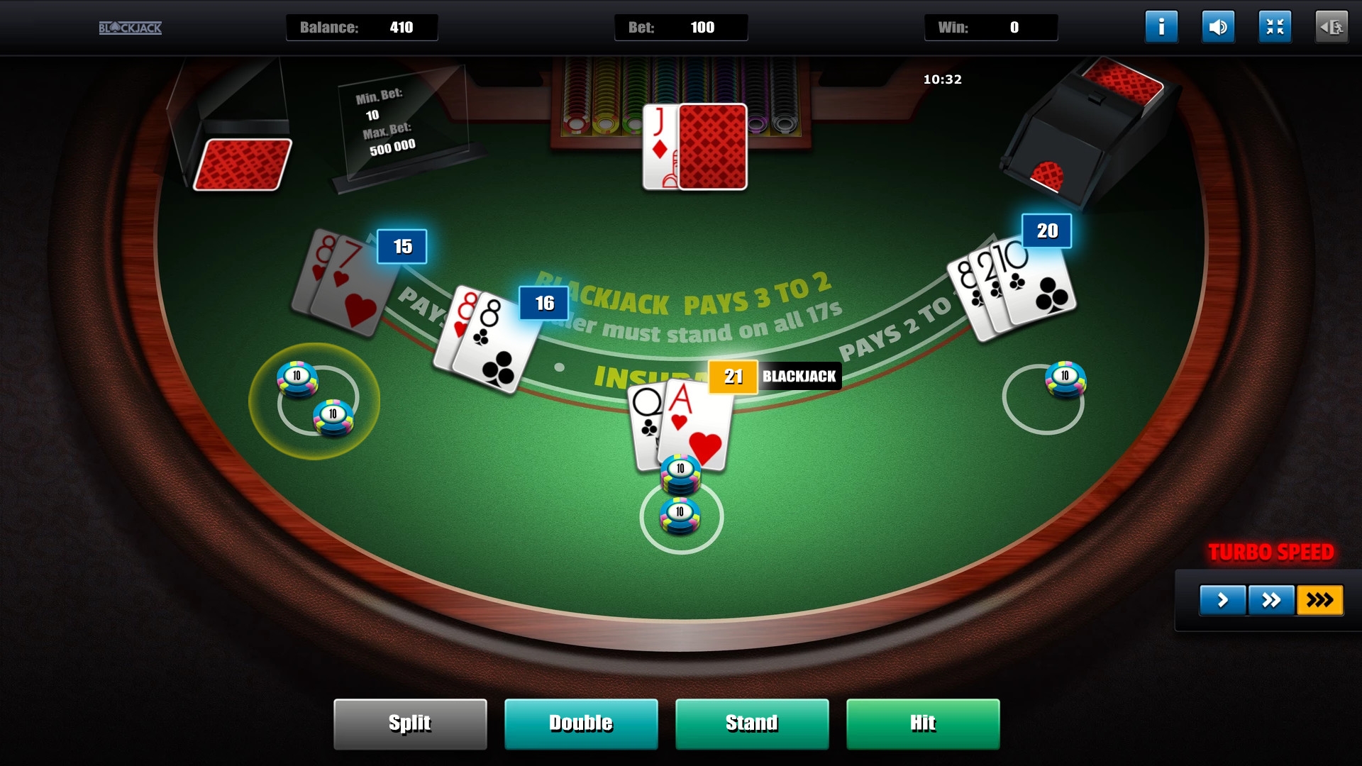 Можно делать сплиты и даблы, брать страховку и равные деньги