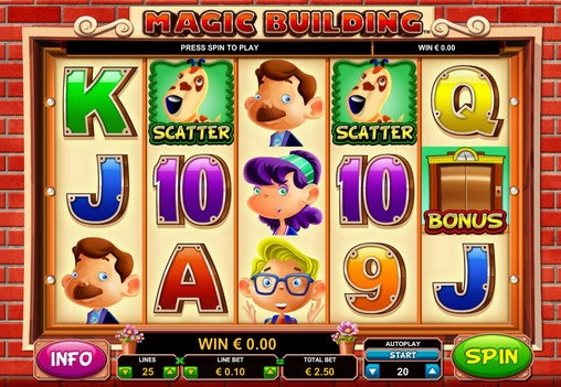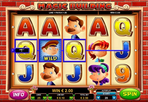 Magic Building – пятибарабанный видео-слот с двадцатью пятью линиями, тремя рядами картинок на экране, специальными символами, бонусными раундами, бесплатными спинами и другими функциями.
