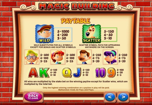 В видео-слоте Magic Building отсутствует накопительный джек-пот.