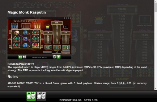 Джокеры и скаттеры правилами Magic Monk Rasputin не предусмотрены.