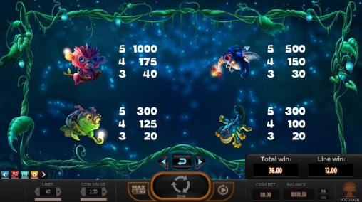 игровом автомате используются восемь обычных картинок. Это сказочные животные, а также насекомые в прозрачных камушках. Они могут идти на барабанах полосами.