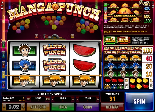 Видео-слот Manga Punch интересен тем, что дизайн классического игрового автомата совмещен в нем с интересными функциями: бонусными призами, символами Wild с дополнительными множителями, смешанными комбинациями и так далее. К тому же, он обладает удобным и приятным интерфейсом, базовыми настройками и возможностью игры прямо на сайте заведения. Так что Manga Punch достойна вашего внимания.