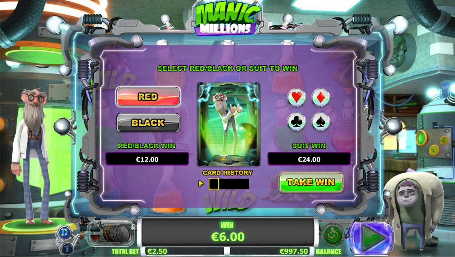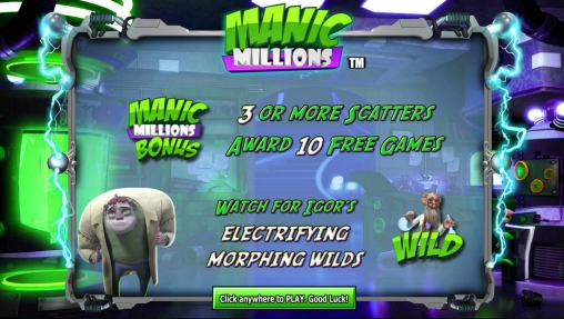 Новый игровой автомат Manic Millions от компании NextGen Gaming был создан по мотивам повести Мэри Шелли о Викторе Франкенштейне и монстре, которого он создал из неживой материи. Но видео-слот, рассматриваемый в обзоре от Casinoz, совсем не такой жуткий, как знаменитой литературное произведение. Он познакомит вас с веселым профессором и его застенчивым творением по имени Игор, в компании которых вы будете участвовать в призовых функциях, получать многочисленные выплаты и проверять удачу в игре по равным шансам.