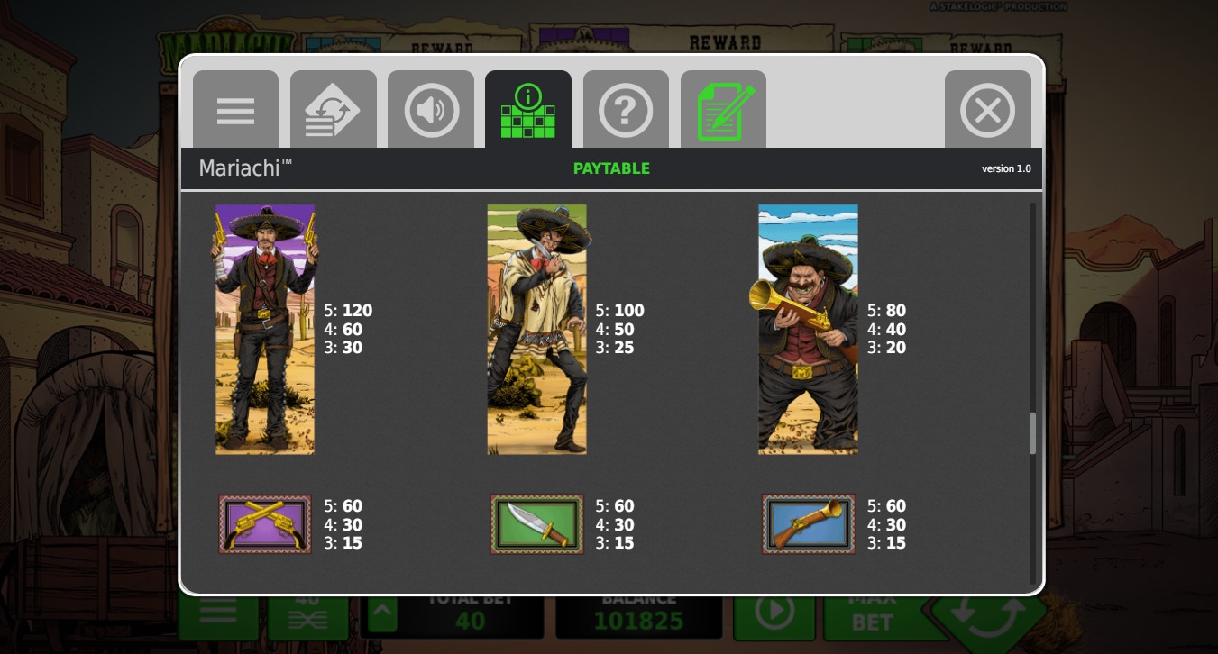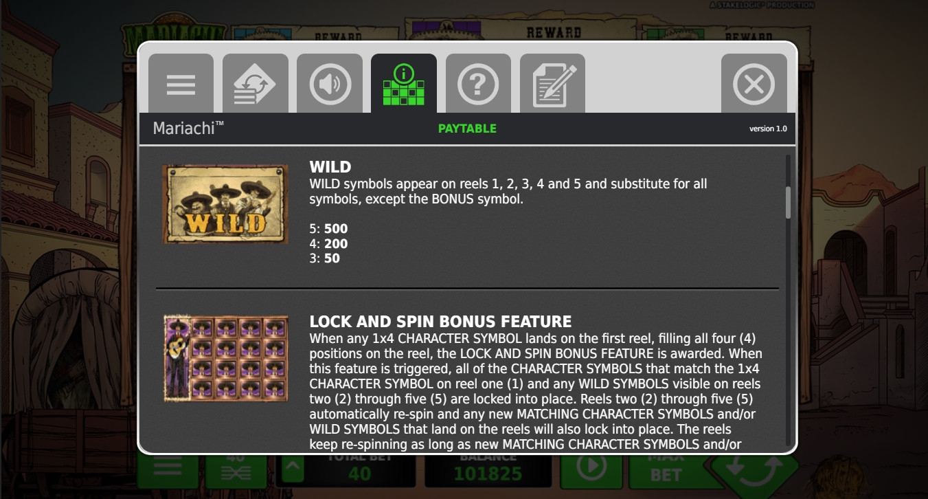 Компания StakeLogic также предлагает вспомнить о мариачи. Знаменитая студия выпустила игровой аппарат Mariachi, выдержанный в стиле комиксов о Диком Западе. Главные герои бесподобно исполняют фольклорные мелодии, а также не боятся нарушать закон, из-за чего повсюду расклеены объявления о розыске этих талантливых преступников.