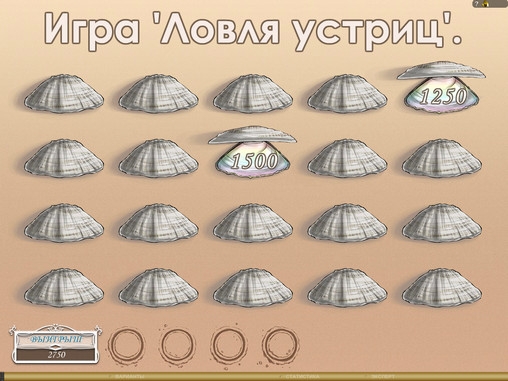 В бонусном раунде «Ловля устриц» вы увидите двадцать раковин на песке. Вам нужно будет открывать их в случайном порядке. Каждая из них дает какую-то призовую выплату. Кроме того, в некоторых ракушка встречаются жемчужины. Когда жемчужин соберется четыре, раунд закончится с сохранением всех полученных выплат.