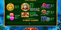 - Scatter (пирамида майя) появляется только в трех средних столбцах. Три скаттера дают выплату в размере трех общих ставок и начинают призовые запуски.