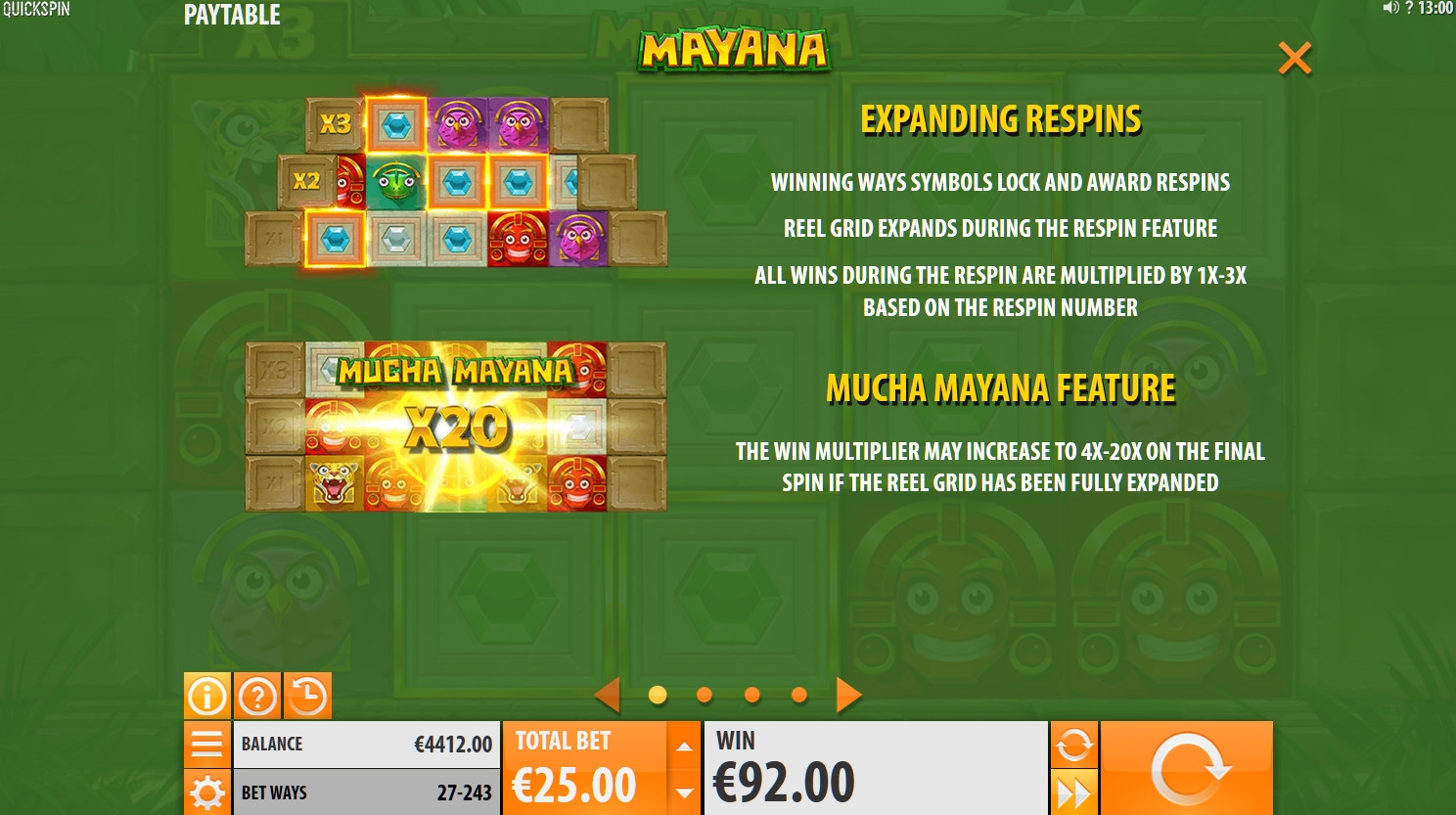 В слот-машине Mayana накопительные джекпоты Quickspin не разыгрываются.