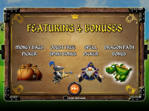 - Joust Free Spins – Вы станете участником семи фри-спинов с расширяющимися Wild, которые выпадают на первом и пятом барабанах.