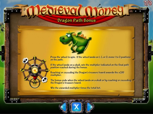 Нередко бывает сразу несколько последовательностей в одном спине, но они должны получиться на разных линиях. Деньги в таких случаях суммируются. Игры на удвоение в Medieval Money нет.