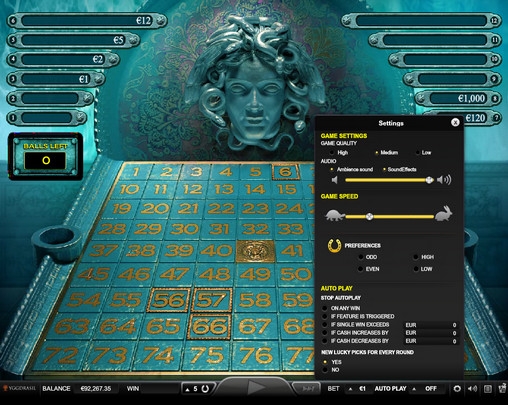 В кено Medusa – Eyes of Fire есть некоторые пользовательские настройки, режим автоматической игры и справочные раздел с подробным описанием правил и особенностей модели.
