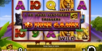- Free Games – Три, четыре или пять Scatter дают право на десять фри-спинов. Они проходят по ставке и количеству полос из предыдущего раунда. Деньги за клиента ставит онлайн-казино. В них джокер добавляется на второй барабан. Также появляется бонусная колонка с множителями х2, х3 и х5, которые учитываются при расчете выплат. Хищники из кошачьих появляются лишь в нечетных колонках и могут составлять смешанные цепочки. Также действуют другие бонусы, о которых вы узнаете в процессе игры.