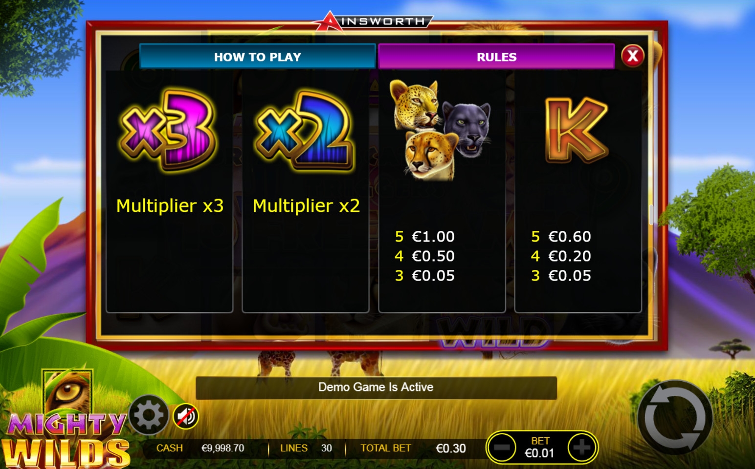 Открывайте Mighty Wilds в бесплатной версии на Casinoz. На деньги играть на автомате можно в 777 Casino или многих других интернет-казино с софтом Ainsworth.