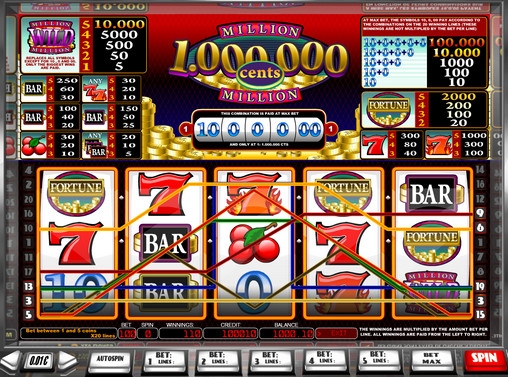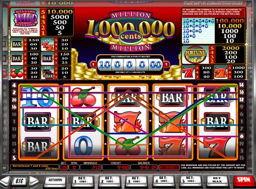 Играть на игровом автомате Million Cents можно только по двадцати активным линиям. На одну линию можно поставить до пяти монет номиналом 0.01, 0.02, 0.05 и 0.10 евро. На спин принимается до десяти евро.