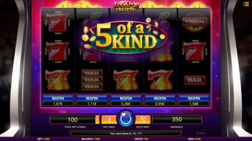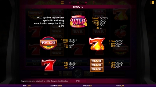 Одна, две и три BAR, вишенки, два вида семерок и логотип Fortune – эти картинки составляют комбинации на линиях. Смешанные цепочки могут формироваться из разных семерок или из разных полосок BAR. Одинаковые элементы часто выпадают в колонках вертикальными стеками.