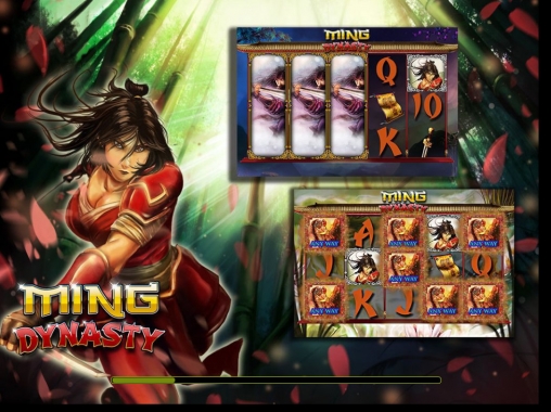 На экране Ming Dynasty появляются различные персонажи эпохи правления семьи Мин, оружие и карточные номиналы, стилизованные под иероглифы. Картинки могут возникать в колонках вертикальными цепочками.